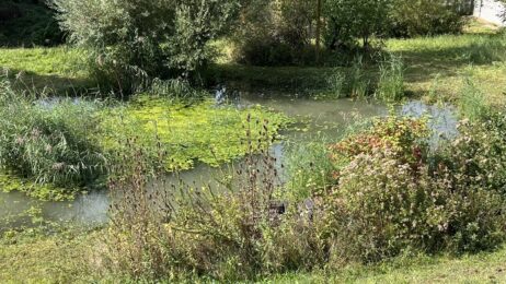 Eine Kuhweide verwandelte sich in ein Naturparadies mit Weiher, Trockenmauern und kiesigen Ruderalflächen. Die Biodiversität vervielfacht sich schlagartig: Teichfrosch trifft auf Gelbrand- und Kolbenwasserkäfer und die Kuckuckslichtnelke wächst in Gesellschaft mit Flockenblumen und Wiesenglockenblumen. Der Eisvogel besucht den Weiher regelmässig und jagt ab seiner Sitzwarte kleine Fische…